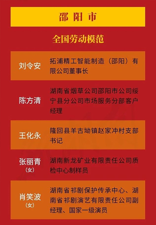 全國(guó)勞動(dòng)模范(邵陽(yáng)5人)